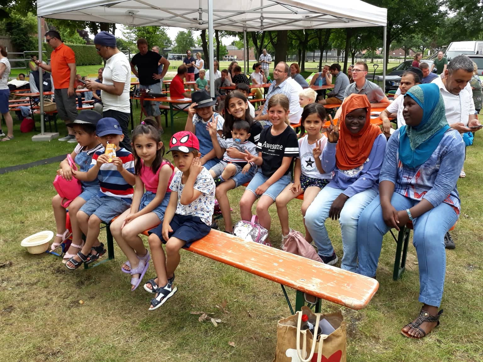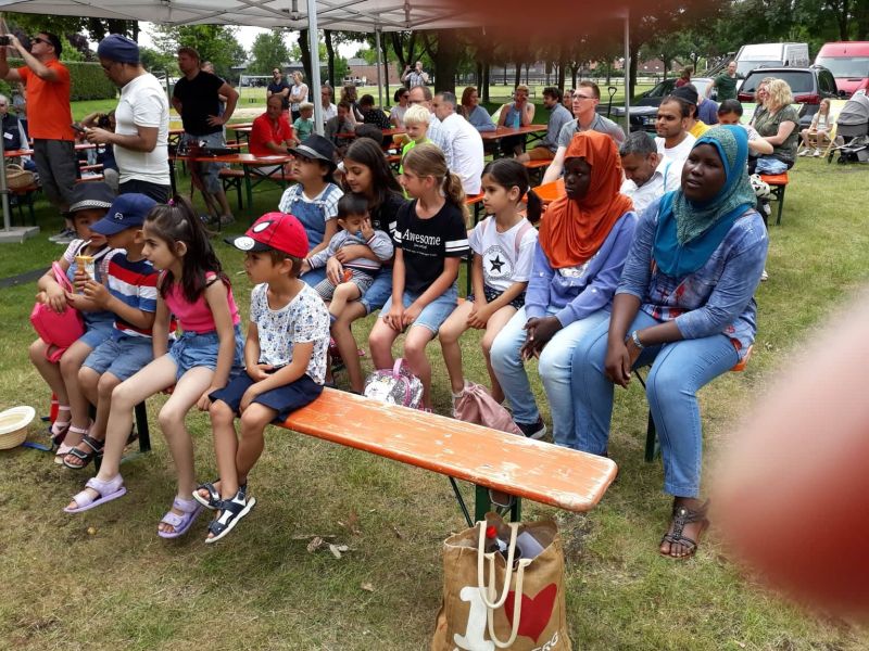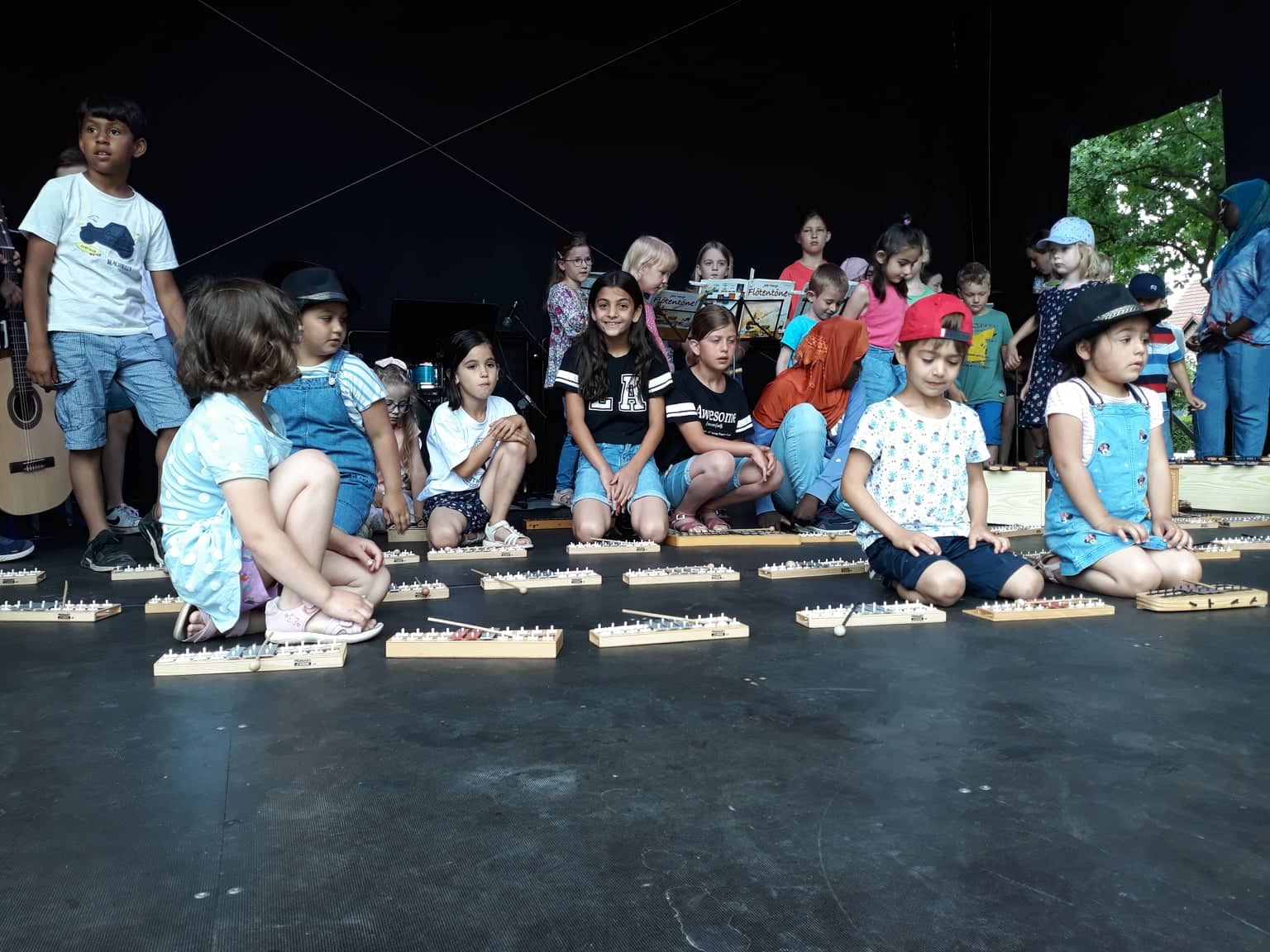 Dann hieß es warten, bis sie an der Reihe waren. Es hatte schon etwas von einem Sack Flöhe hüten, bis es dann endlich so weit war. Rudram, Zeinab, Miriam, Aschde, Lisa, Nasira, Sozan, Elena und Ilia haben super gesungen und geklatscht. Sie waren mit Feuereifer dabei.